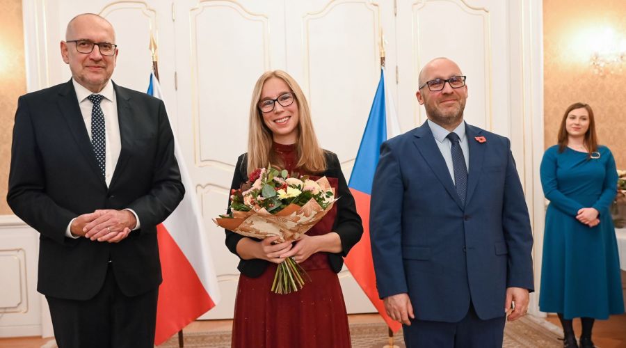 Gratulujeme naší absolventce Lucii Diblíkové, která včera obdržela cenu ministra školství, mládeže a tělovýchovy pro vynikající studenty, konkrétně v kategorii cen studentům nebo absolventům za mimořádný čin prokazující občanskou statečnost, odpovědnost nebo obětavost.
