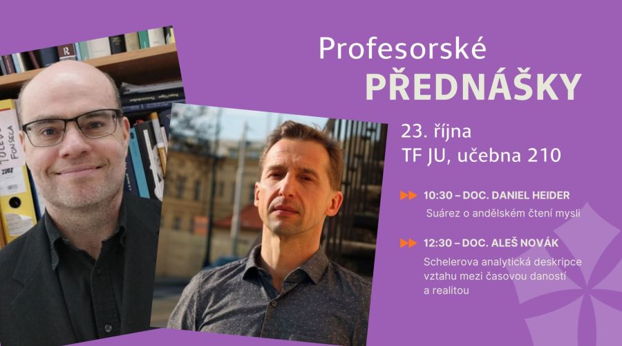 Ve čtvrtek 23. října 2025 proběhnou na Teologické fakultě Jihočeské univerzity veřejné části jednání Vědecké rady TF JU v rámci jmenovacích řízení doc. Daniela Heidera (TF JU) a doc. Aleše Nováka (FHS UK).